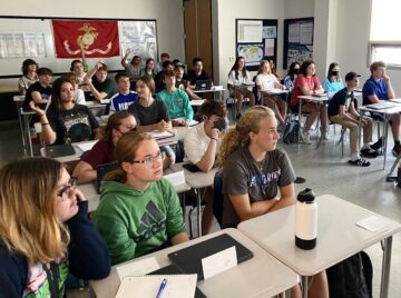 “The main thing we’re trying to do is prepare students for the challenge that awaits them on August 30th,” said Sean Burke, who teaches the Advanced Placement course. “We’re explaining to them what the course is about and how to be successful.” He said it’s not simply linear history. Instead, it’s thematic, “which is very different from what they’re used to,” he said.