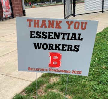 Sign to honor essential workers continuing to serve the community during the pandemic.