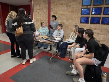 Her vision came to life from 5:30 to 8:00 p.m., transforming the building into a place where fun, connection, and meaningful conversations flowed naturally. Inside the gym, Mrs. Birth moved nonstop, dancing with students, challenging them at Jenga, and talking with families about the pressures today’s children face.The hallway buzzed with equal energy as community service organizations, school clubs, and the Parent Teacher Student Organization (PTSO) welcomed families with resources, games and warm conversation.