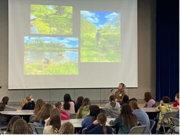 Our guidance team focuses on one pathway each month and provides meaningful activities to our students. We invited a restaurant owner/chef from the Blind Pig and pilots from the Bloomsburg Airport to speak to our students. The presentations were a tremendous success, and our students asked many great questions of the presenters. We interviewed a current high school student from our Human Services pathway and broadcast his responses to all students on our very own WJAY news program.