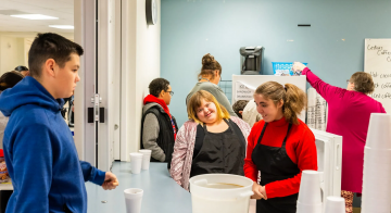 Cedar Caffeine Café creates community through hot drinks and warm smiles. The café is a mini-business run by Life Skills classrooms at Lebanon High School. The coffee shop grew out of an in-school coffee delivery service for faculty and staff. Now it operates as a full-service coffee shop three days each week. The students run the show, with all proceeds going to Life Skills and Autistic Support classrooms. These proceeds have resulted in expenses-paid trips for the students to Red Robin (a chance to practice restaurant skills) as well as that highly-desirable end of year reward: A trip to Hersheypark.