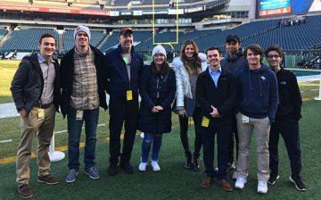 The group met Fox Sports director Rich Russo, Broadcasting Hall of Famer and Audio Production Specialist Fred Aldous, former NFL Referee turned in-game Color Analyst Mike Pereira and Fox Sideline Reporter Erin Andrews, as they toured the three production trucks where the live Fox Sports programs are produced and broadcast around the country. At the in-venue production facility of Lincoln Financial Field, the students also had the opportunity to speak with Executive Producer Kelly Rafferty.
