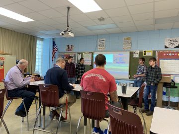 CTE students presenting their design for a sign for the back entrance of the high school.