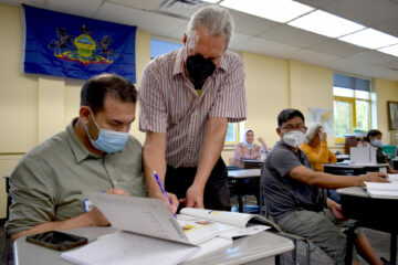In its first week, nearly two-dozen adults participated in the free classes by carefully taking notes, asking questions and competing in mini challenges by writing sentences on the chalkboard. The adult students are a true melting pot, immigrating from Columbia, Ecuador, Egypt, Iraq, Libya, Myanmar, Syria, Turkey, Uzbekistan and Venezuela.