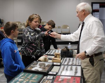 Mr. Stahl, a retired MAHS educator, visited fifth grade students in September 30 as part of a social studies unit called “The First Americans.” During his presentation, Stahl shared information and allowed students, including Lealand Butler, Leahanna Walters and Hayden Gray, to examine his extensive collection of Indian artifacts, including items identified as belonging to Monongahela Indians, who called this region their home from approximately 800 to 1500 B.C.