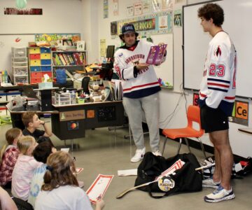 Tomahawk players spent the afternoon reading to students and sharing insight and information on their sport. Players read the Sports Illustrated book My First Book of Hockey: A Rookie Book. They also signed autographs and fielded thoughtful questions about their own backgrounds and journey from youth sports to competing in the North American Hockey League. They also showed the students their equipment and emphasized the need for hard work and commitment in order to be successful.