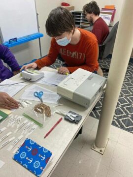 Students Jeffrey Wamsley and Sammy Atkinson complete office tasks in the center