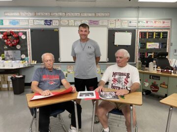 The 2022 season marks 100 years for Meyersdale Football. Red Raider Coach Ryan Donaldson (standing) said it is an honor to be a part of a legacy that dates back to the 1920’s and includes such greats as Fred DiPasquale (seated, left) and Dennis Stahl. On Friday, October 7, Homecoming 2022, the Sideline Club, Meyersdale Area School District and MAHS Student Council would like to invite Red Raiders and their fans to a special open house at the high school from 4:30 to 5:30 p.m. Prior to the game against the Windber Ramblers, the football boosters plan to recognize all Red Raider Football players in attendance. Organizers are inviting any former player to attend the celebratory game. Those in attendance will be brought onto the football field prior to the game, at 6 p.m., to be recognized.