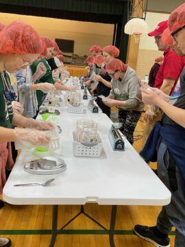 North Star students weigh and seal meal packages