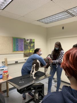 With the second semester beginning, students are being introduced to the curriculum on Vet Tech B. This course provides students a comparative overview of the gross anatomy, microscopic anatomy and physiology of large and small animals, as well as common diseases and ailments that affect specific systems and organs. The students are educated on organ systems structure and function as well as stages of pregnancy in different animals. They will be given the opportunity to examine the interrelation between disease, pathology and immunology and analyze the effects of different drugs on the animal body and their uses for combating various ailments. Calculating and measuring appropriate dosages for each animal, administering, storing and inventorying pharmaceuticals are also important factors learned about in this course. Integrating laboratory components into the class, students may dissect animals and examine tissues under a microscope.
