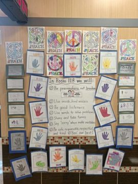 In October Penn Hills Elementary celebrated Peace Week. Students in grades K-5 talked about the importance of peace and non-violence and created original artwork and writing celebrating and promoting peace at school. In each classroom, students signed peace pledges, signifying their commitment to peaceful conflict resolution, listening and being respectful of others. The pledges were hung in the hallways, said the Pittsburgh Tribune-Review. See the collection of pledges in the school’s video on YouTube.