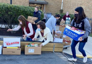 Quakertown Elementary School teachers and staff load up donated food for delivery to the Quakertown Food Pantry.
