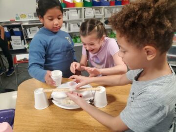 Next, the students will incorporate the engineering design process to create a system to prevent the erosion from happening. The second-graders will brainstorm ideas, draw sketches, build and test working models and have a chance to revisit their designs.