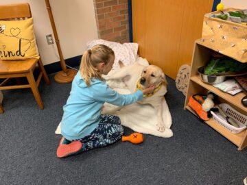 Man’s best friend has returned to Connoquenessing Valley Elementary (CVE) to provide additional support to students. Zach is a service dog that was graciously provided by the Souza family, parents from CVE. After training with teachers and staff members, this beautiful English Lab visited CVE twice a week during the end of the 2021-22 school year. Both students and staff members benefited from Zach’s calming presence and are thrilled to welcome him back.
