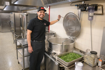 Chef West, a longtime chef with experience in both executive roles and education-based food service, prepares the soups fresh each week in the school kitchen. His rotating menu features a variety of soups, including Italian wedding, chicken tortilla, chili and broccoli cheese, all made with local ingredients. These soups are sold as an à la carte item for $2.25 per 12-ounce serving, and they’re so popular that they often sell out by the end of lunch.