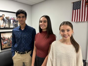 Three Fox Chapel Area High School students competed in a new episode of “KD Quiz,” which will air on Saturday, November 9, 2024, on KDKA-TV (CBS Pittsburgh). The Fox Chapel Area High School team members this year are seniors Anna Delale-O’Connor and Rohit Velankar, and junior Eloise Johnson. Filming the episode, the Fox Chapel Area High School team competed against students from Moniteau and Springdale high schools. The Fox Chapel Area High School “KD Quiz” sponsor is gifted education facilitator Lisa Gibson.