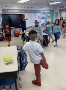 Mrs. Kocher leads students in a yoga activity during this year’s summer program.