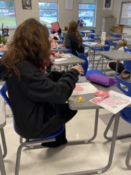Palmerton Area Junior High School students create valentines for the Touch a Heart campaign.