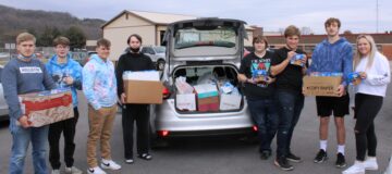 Tech Ed Club students at Meyersdale Area High School, including (from left):Aidan Kalp, Matt Boyce, Collin Krause, Chris Prosser, William Donitzen, Kyle Robertson and Amelia Kretchman; have donated more than $350 in supplies to the relief efforts for tornado victims in Mayfield, Kentucky. Students purchased and collected items to be included in a local shipment to the storm-ravaged community.