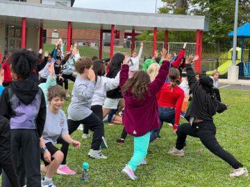 Every 10 minutes, Hallowell Elementary students “walked this way” to one of 12 educational stations for Walk this Way Day on September 30.Community members at each station taught students safety practices, fitness routines and healthy lifestyle tips.