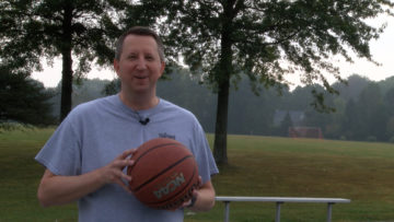 Superintendent Dr. Scott Eveslage plays basketball to celebrate Walk this Way Day.
