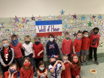The elementary and intermediate students wore red, white and blue and helped to build a Wall of Honor to celebrate Veterans. They also learned about what it means to be a veteran and created heartfelt “thank you” posters to recognize those special veterans in their lives and community.